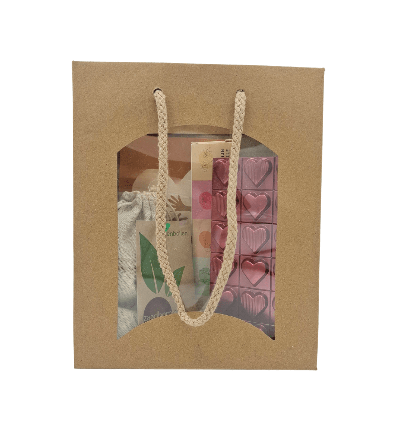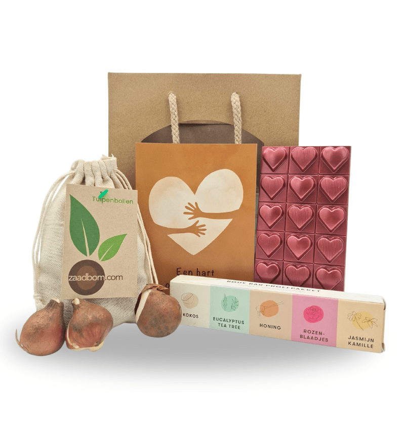 Een warm en persoonlijk cadeau om iemand een steuntje in de rug te geven. De Hart onder de Riem – Giftbag combineert symboliek, verzorging en iets lekkers in één stijlvol jute zakje. Perfect om te sturen bij moeilijke momenten, als bedankje of gewoon zomaar.