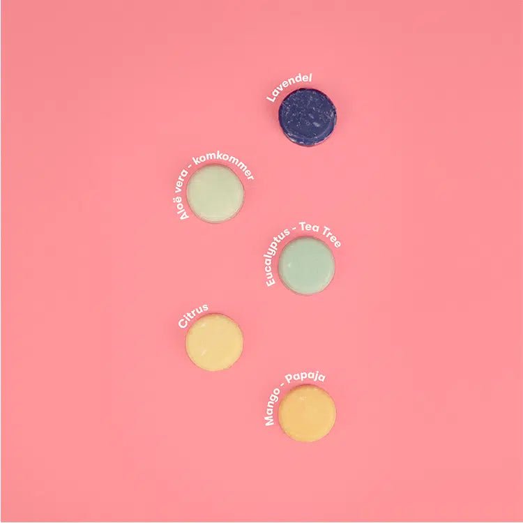 Een selectie van natuurlijke mini shampoo bars, ideaal om verschillende geuren en verzorging te ontdekken.