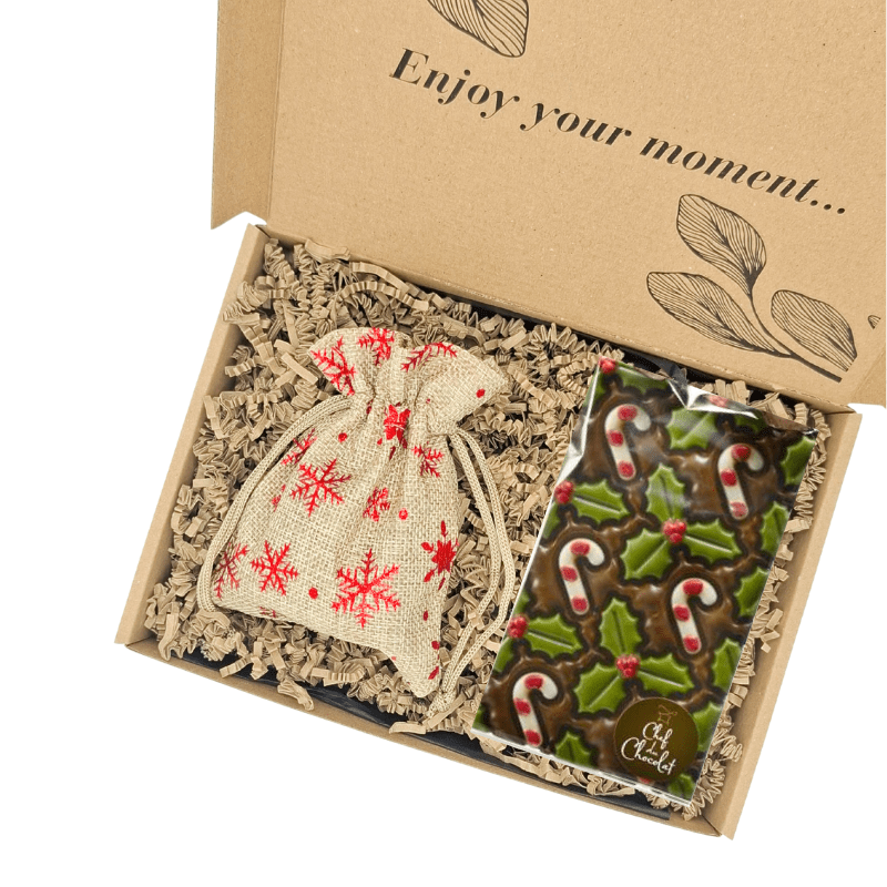 Verwen iemand deze kerst met een origineel brievenbuspakket vol lekkers én groen. Dit pakket combineert een heerlijke handgemaakte kerstchocolade met een feestelijk jute zakje gevuld met 5 tulpenbollen. Ideaal om direct als cadeau te versturen en iemands dag extra speciaal te maken. Voeg een leuke wenskaart toe en wij doen de rest 😉