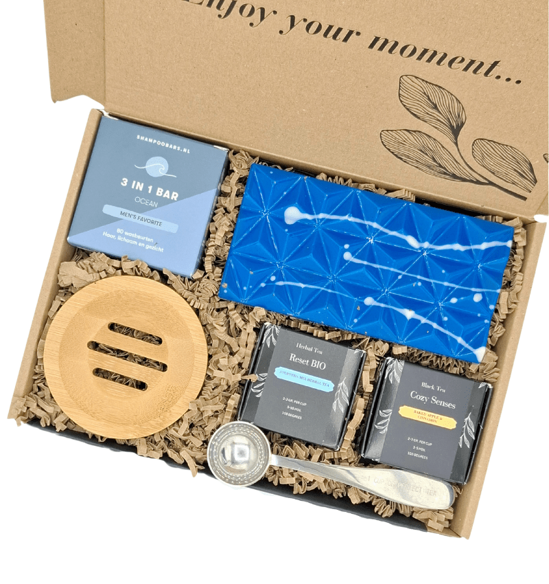 Gun jezelf of een ander een moment van pure rust met het Relax & Ontspan Pakket. Dit zorgvuldig samengestelde pakket combineert smaakvolle lekkernijen met duurzame verzorging en een vleugje wellness. Perfect om even helemaal tot jezelf te komen of als origineel cadeau voor iemand die ontspanning verdient.