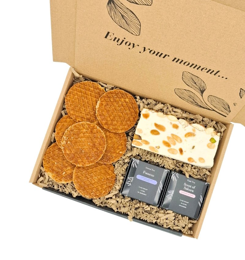 Het Thee pakket wordt geleverd in een luxe verpakking samen met alle benodigde accessoires. De box past door de brievenbus en kan rechtstreeks naar de ontvanger worden verzonden, inclusief een persoonlijke boodschap op een wenskaart