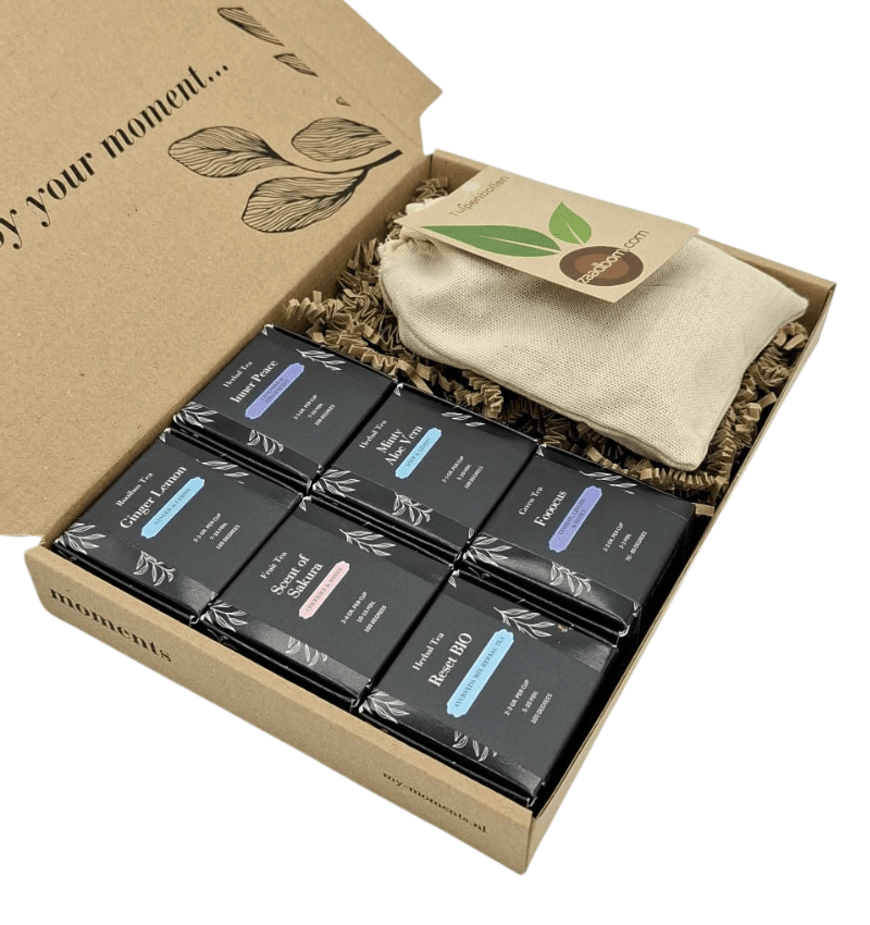 Het Thee pakket wordt geleverd in een luxe verpakking samen met alle benodigde accessoires. De box past door de brievenbus en kan rechtstreeks naar de ontvanger worden verzonden, inclusief een persoonlijke boodschap op een wenskaart
